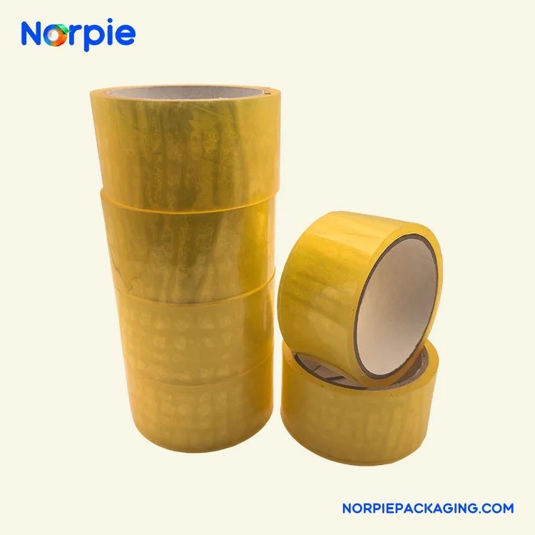 Norpie® vyrábí světle žlutou balicí pásku s použitím prvotřídní BOPP fólie jako základního materiálu, potažené ekologickým akrylátovým lepidlem citlivým na tlak na vodní bázi. Produkt se vyznačuje tloušťkou 0,048 mm, počáteční lepivostí alespoň 12# ocelové kuličky a dobou zachování lepivosti více než 20 hodin, nabízí vynikající lepicí výkon a přínosy pro životní prostředí. Lepidlo na vodní bázi je netoxické a bez zápachu, s obsahem VOC hluboko pod národními normami a je vhodné pro použití při teplotách od -5 °C do 50 °C.